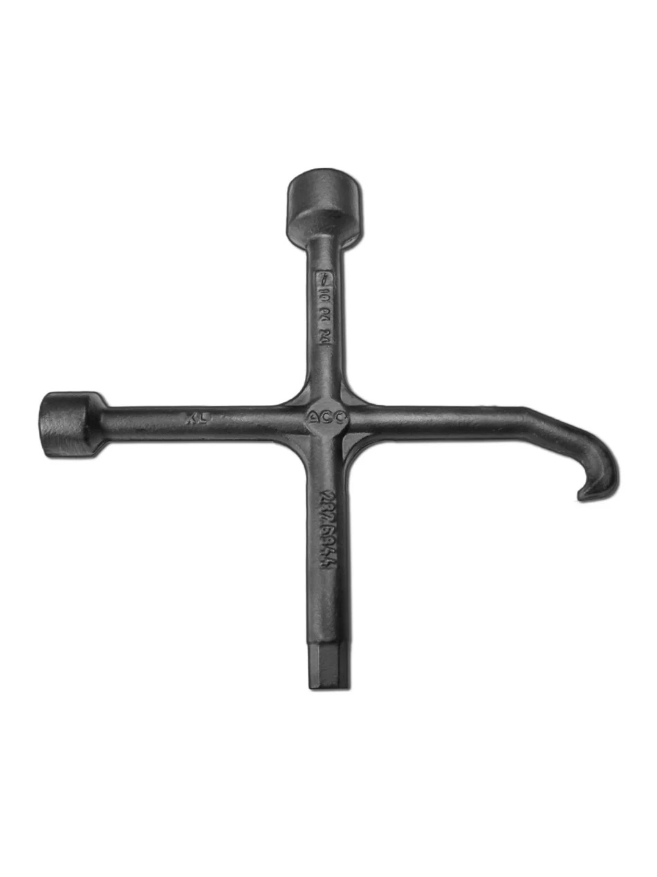 Dieser Kupplungsschlüssel aus verzinktem Stahl mit kälteisolierendem Griffschutz dient zum Anziehen oder Öffnen von Sturz-Kupplungen.