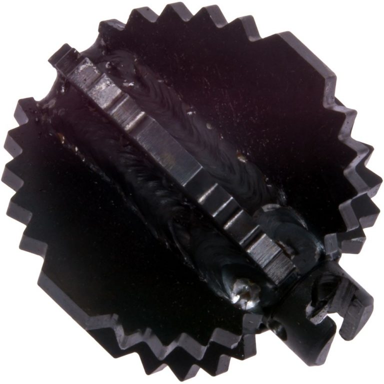 Beim Einsatz dieses Kugelfräsers wird das abgefräste Material über die gedrillten Nuten nach hinten abtransportiert.